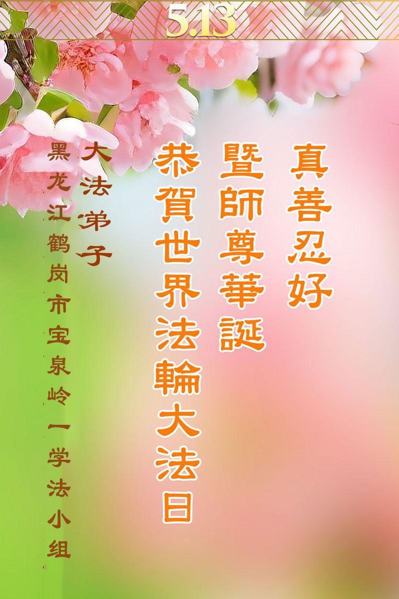 U ovom izveštaju predstavljamo izbor od 22 čestitke koje su poslali praktikanti Falun Dafe iz provincije Hejlungđang, Kina. Praktikanti su zahvalni Učitelju što je predstavio principe Istinitosti-Blagosti-Trpeljivosti i na tome kako im je ta praksa koristila. Zavetovali su se da će biti marljiviji u kultivaciji i pomoći većem broju ljudi da saznaju koliko je Falun Dafa divan.