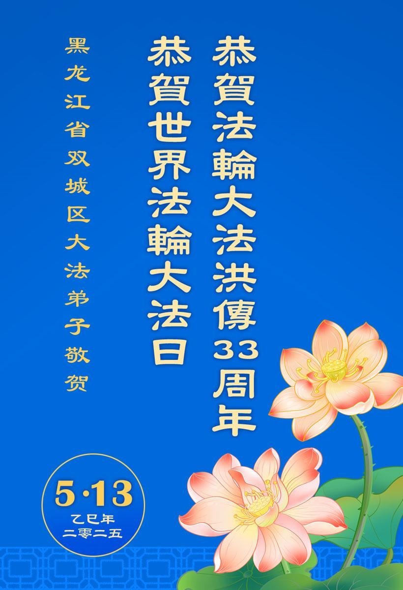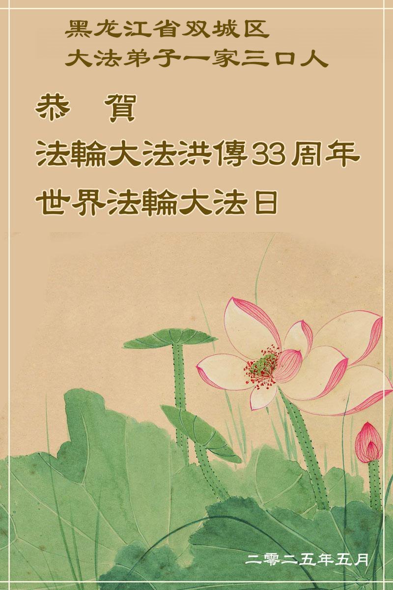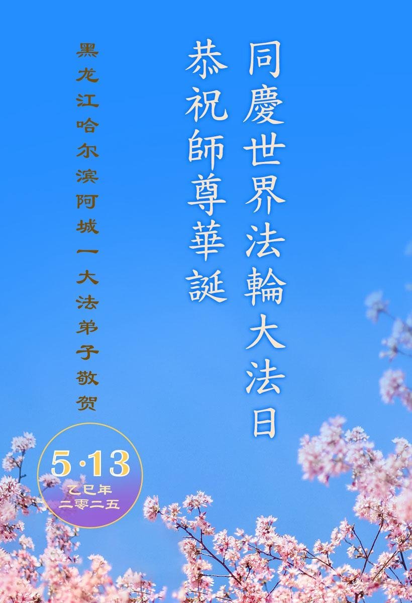U ovom izveštaju predstavljamo izbor od 19 čestitki koje su poslali praktikanti Falun Dafe iz grada Harbina, provincija Hejlungđang, Kina. Praktikanti izražavaju duboku zahvalnost Učitelju za uvođenje principa Istinitosti-Blagosti-Trpeljivosti i za to kako im je ta praksa koristila. Zavetovali su se da će biti marljiviji u kultivaciji kako bi bili dostojni Učiteljevog mukotrpnog spasenja i pomogli većem broju ljudi da saznaju koliko je Falun Dafa divan.