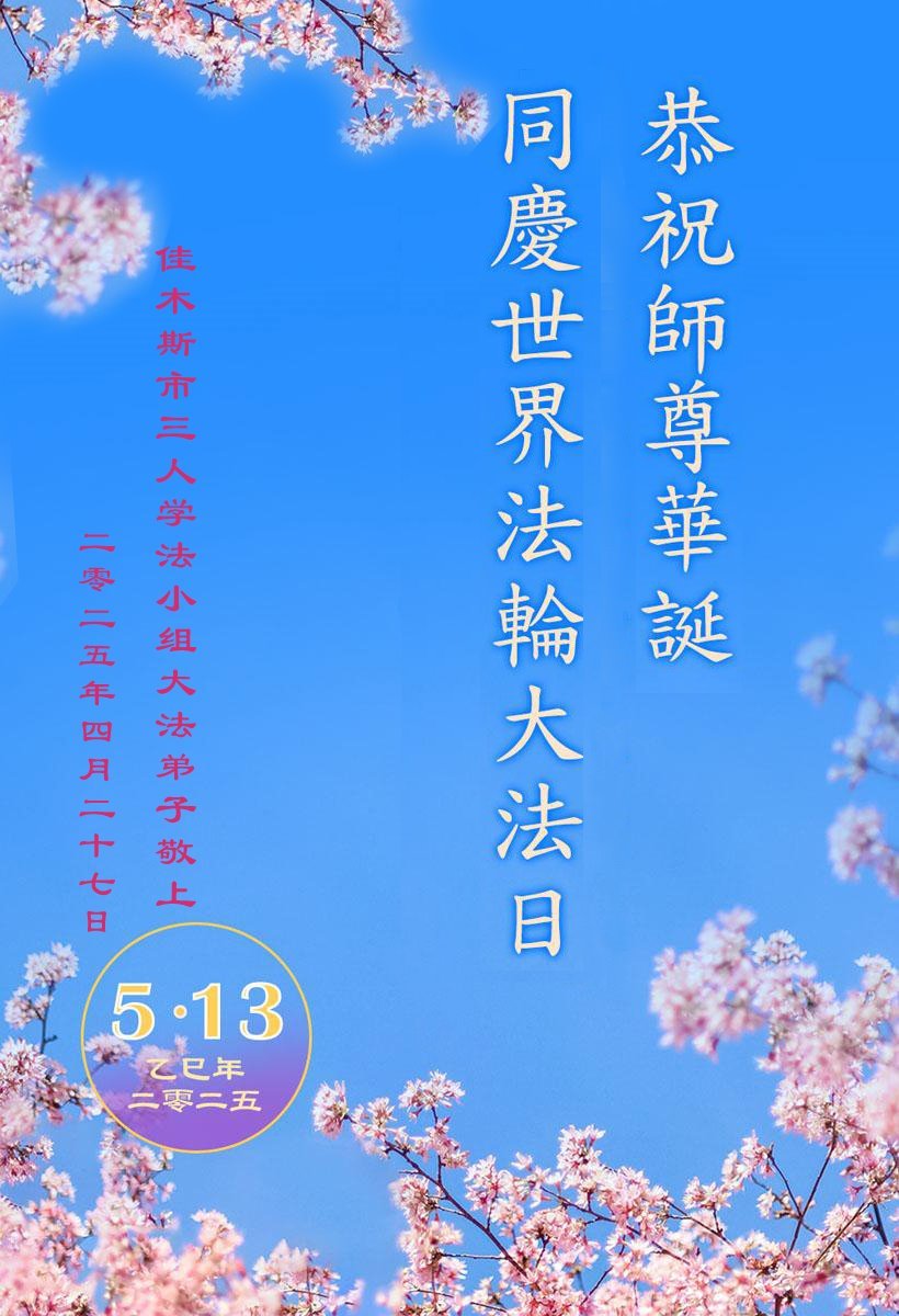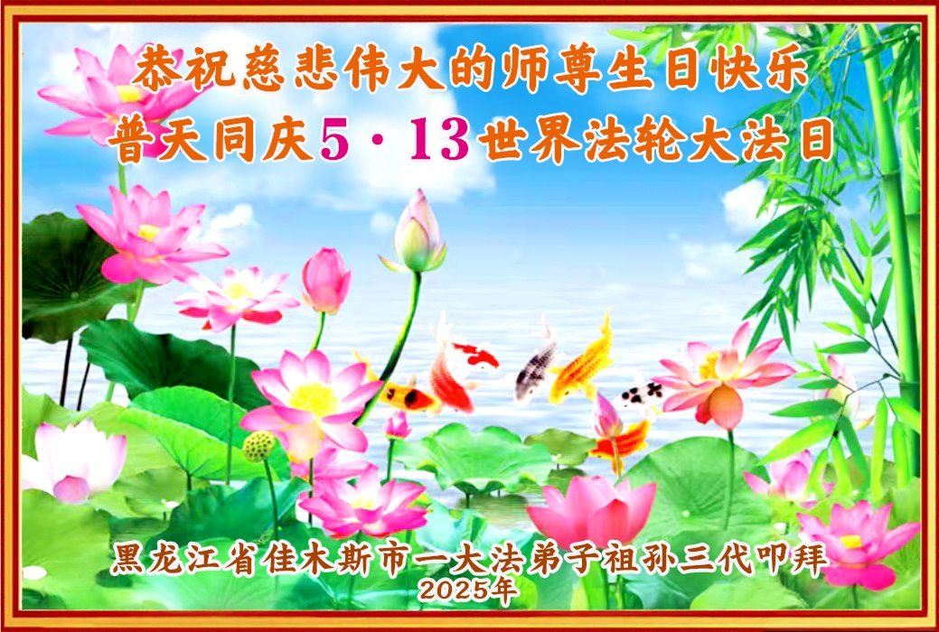 U ovom izvješću prezentiramo selekciju od 18 čestitki koje šalju praktikanti Falun Dafa iz Jiamusija iz kineske provincije Heilongjiang, povodom posebne prigode 13. svibnja 2025.: 26. Svjetskog dana Falun Dafa i rođendana Učitelja Li Hongzhija.