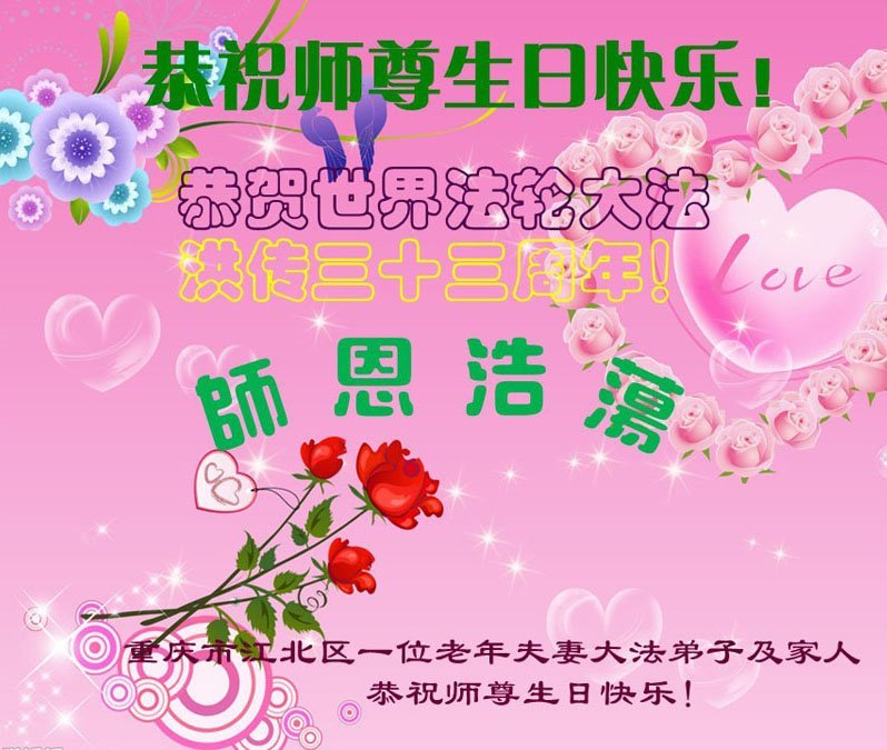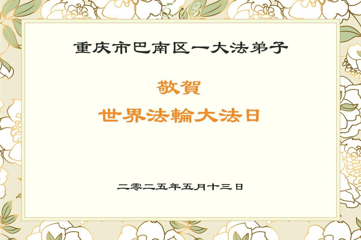 U ovom izveštaju predstavljamo izbor od 23 čestitke koju su poslali praktikanti Falun Dafe iz Čongkinga, Kina.