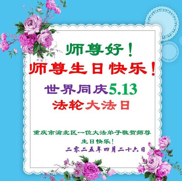 13. maja 2025. godine obeležava se 26. Svetski dan Falun Dafe i 33. godišnjica javnog predstavljanja Falun Dafe. Ovaj dan je takođe rođendan učitelja Li Hongdžija, osnivača Falun Dafe. Praktikanti širom sveta šalju svoje srdačne čestitke kako bi proslavili ovaj veliki događaj i odali počast poštovanom Učitelju na ovaj poseban dan.