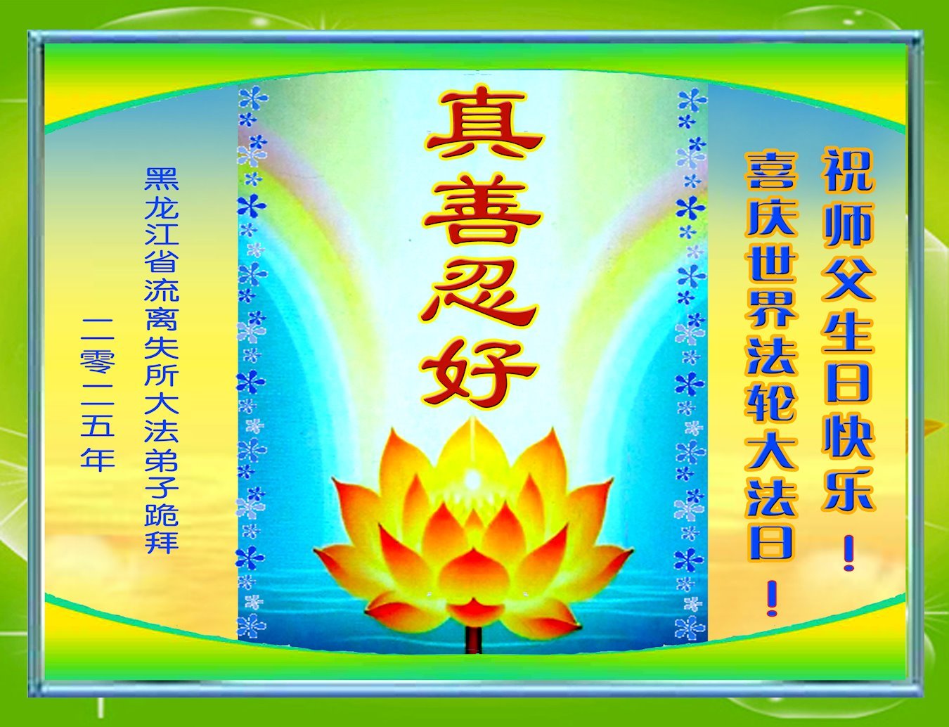 Falun Dafa praktikanti iz provincije Hejlungđang žele poštovanom Učitelju srećan rođendan i proslavljaju Svetski dan Falun Dafe!