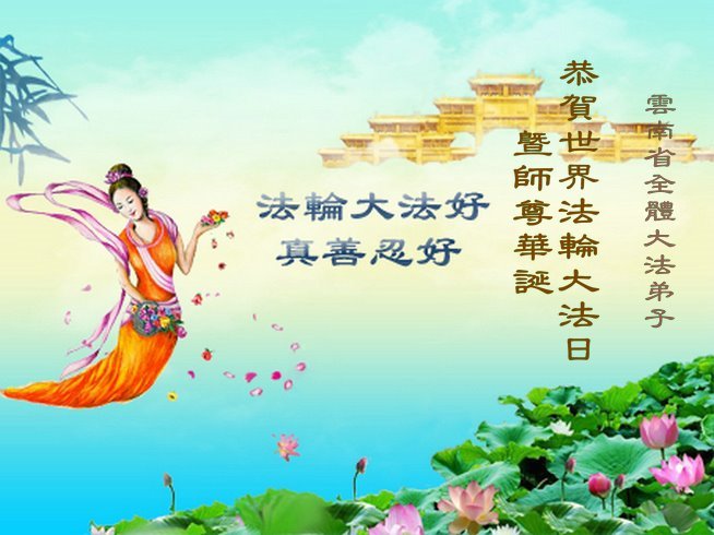 Falun Dafa praktikanti iz provincije Junan žele poštovanom Učitelju srećan rođendan i proslavljaju Svetski dan Falun Dafe!