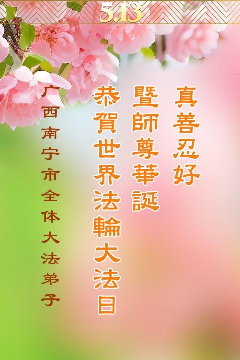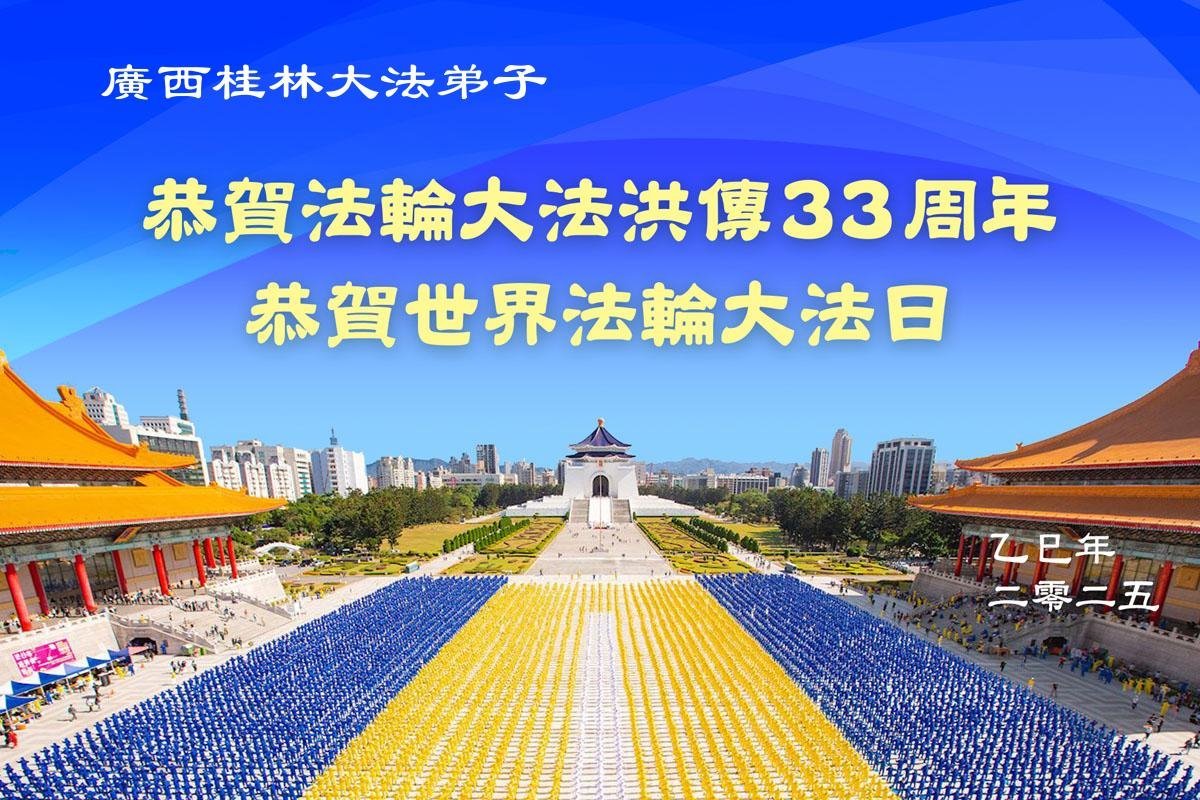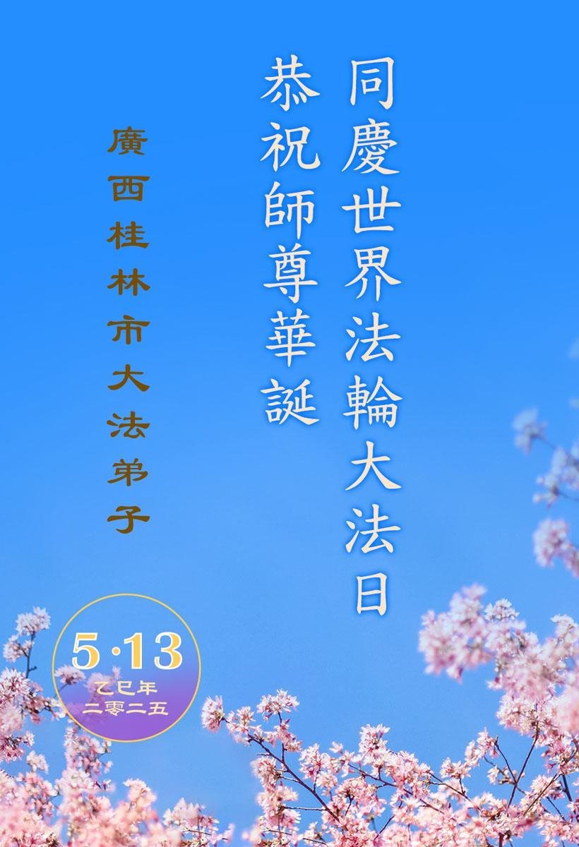 Falun Dafa praktikanti iz Guangsija žele poštovanom Učitelju srećan rođendan i proslavljaju Svetski dan Falun Dafe!