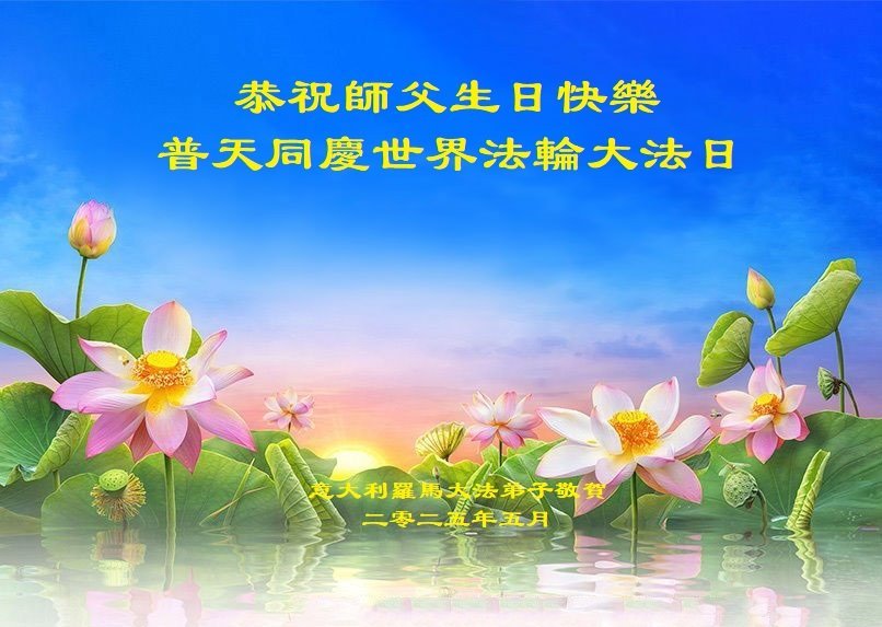 Falun Dafa praktikanti u Italiji s poštovanjem žele Učitelju srećan rođendan! Najlepše čestitke povodom Svetskog dana Falun Dafe!