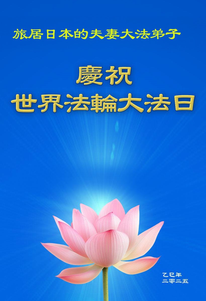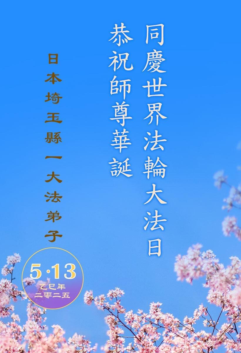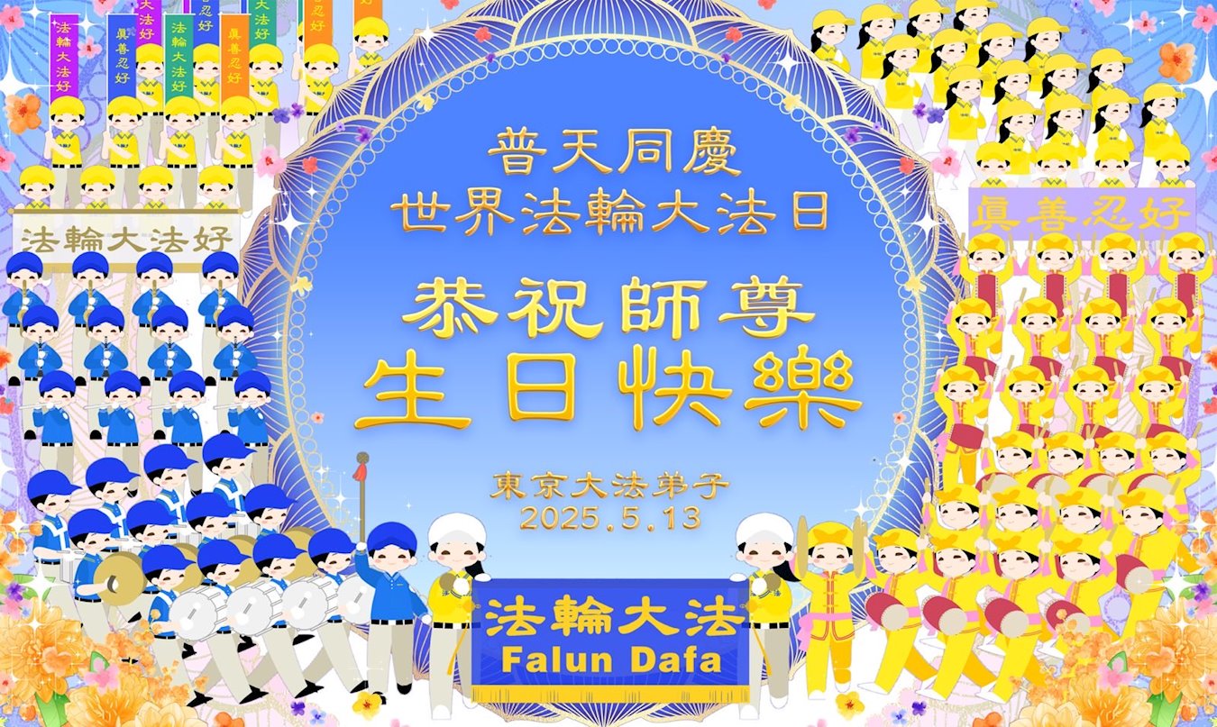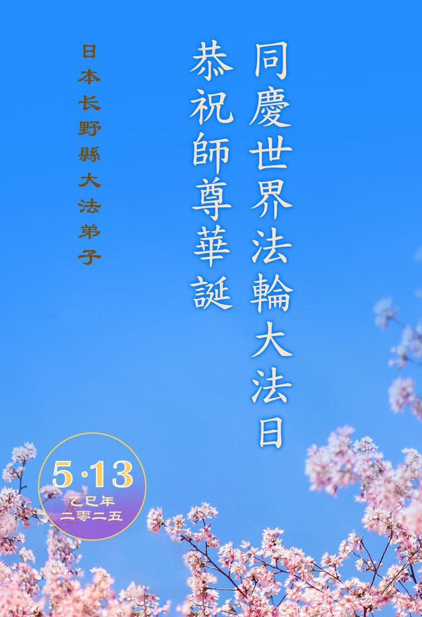Praktikanti u Japanu slave Svetski dan Falun Dafe i 33. godišnjicu predstavljanja Falun Dafe javnosti. Takođe s poštovanjem žele poštovanom Učitelju srećan rođendan i izražavaju zahvalnost za Učiteljevo saosećajno spasenje.